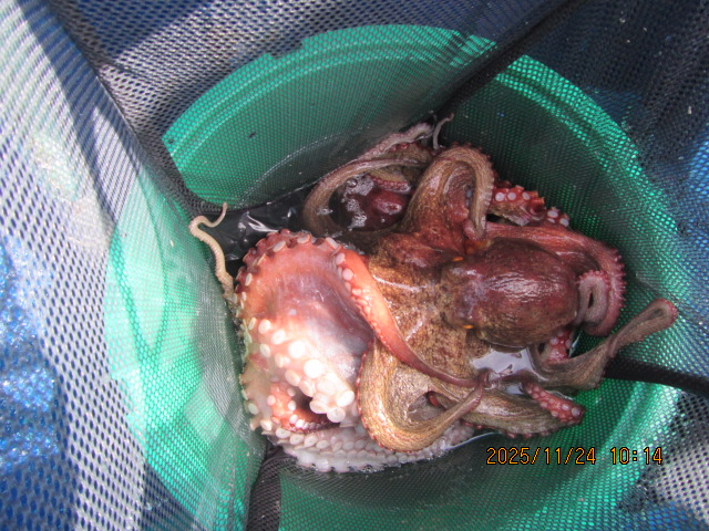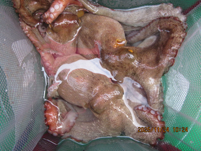 2.7kg 2.5kg の大ダコはじめ釣る 12月1日の ヒラメ解禁 ご予約受付けております 各自の樽