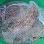 凪ぎ 波1m 釣り易かった マダコ餌木 楽しめました; 全員 釣れました 各自の樽です