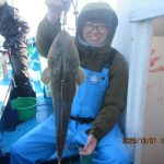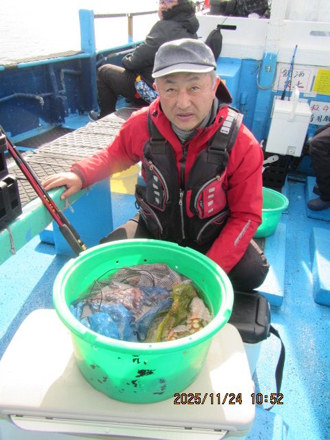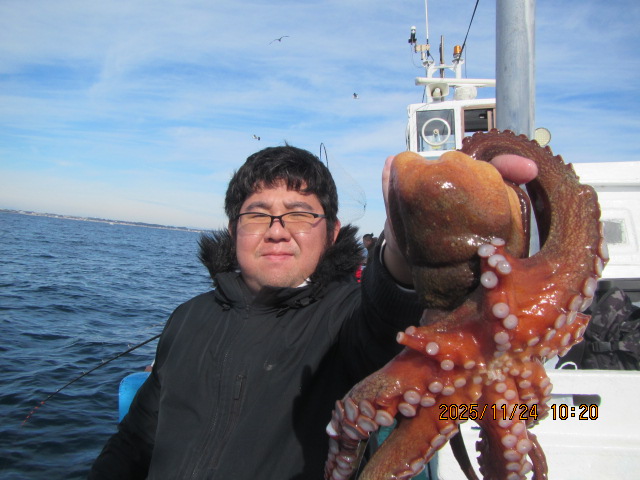 2.3kg 2.0kg の大ダコ初め釣る 船中活況; 全員釣り 笑顔で マダコ釣り楽しめた;