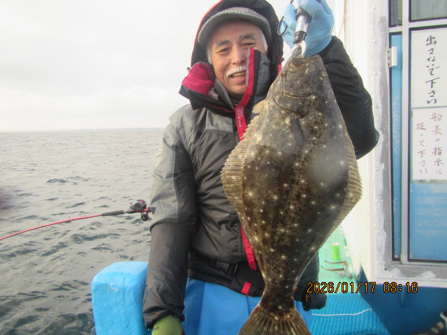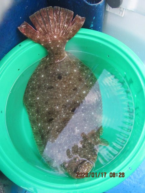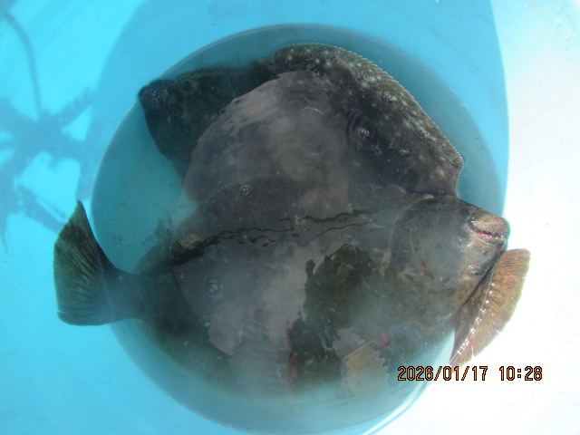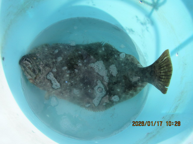 ヒラメ釣り 1月10日 ヒラメ 0.4~4.2kg 0~10枚 濃い群れ 頭の上に乗せて釣る
