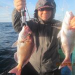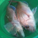 テンヤ真鯛 75cm 6.3kgの大鯛 初め 真鯛釣れる; 0.5~6.3kg 2~6尾 他に 大型メバル 大型カサゴ フグ釣れる 群れ来てますから ぜし 釣って下さい 濃い群れ探し 群れへ乗せて釣ります;