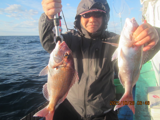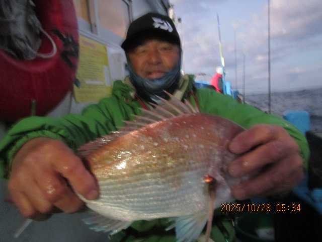 テンヤ真鯛 75cm 6.3kgの大鯛 初め 真鯛釣れる; 0.5~6.3kg 2~6尾 他に 大型メバル 大型カサゴ フグ釣れる 群れ来てますから ぜし 釣って下さい 濃い群れ探し 群れへ乗せて釣ります;