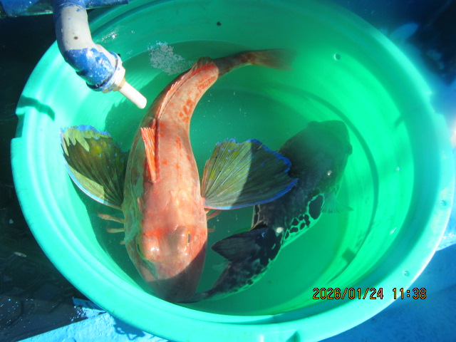 釣果情報ヒラメ釣り 1月24日 (土) ヒラメ 0.3~2.8kg 1~7枚 他に大型ホウボウ トラフグ